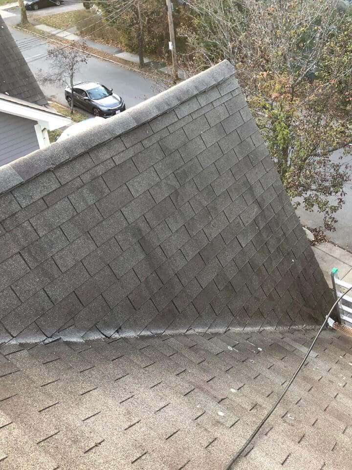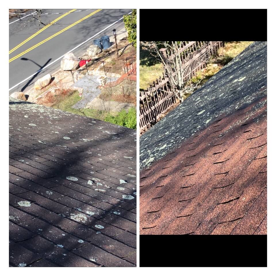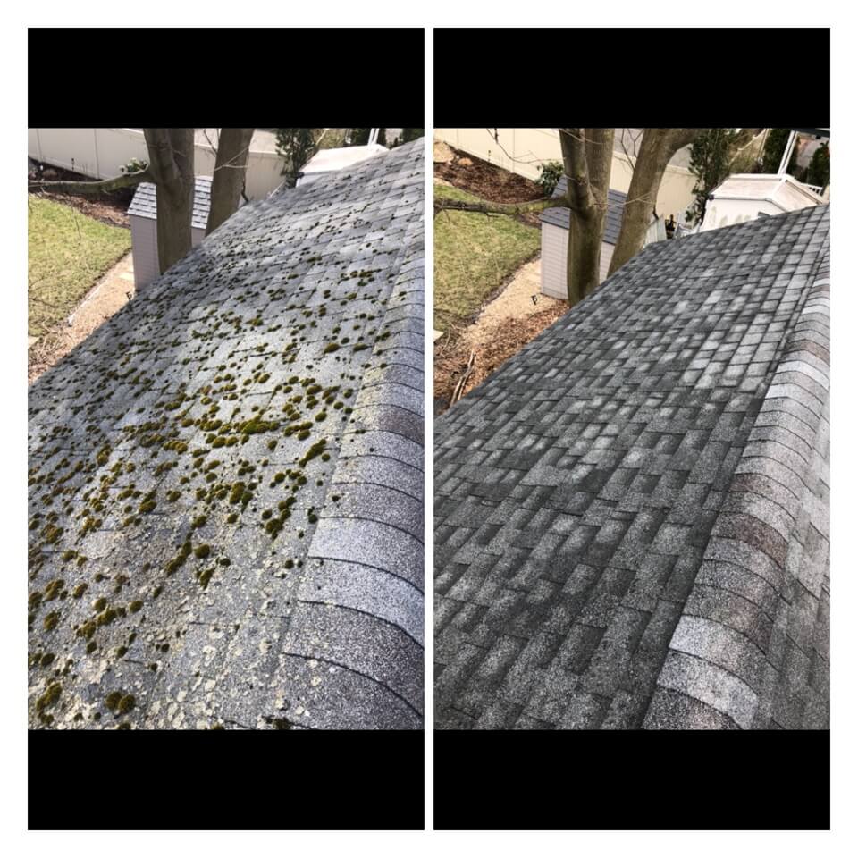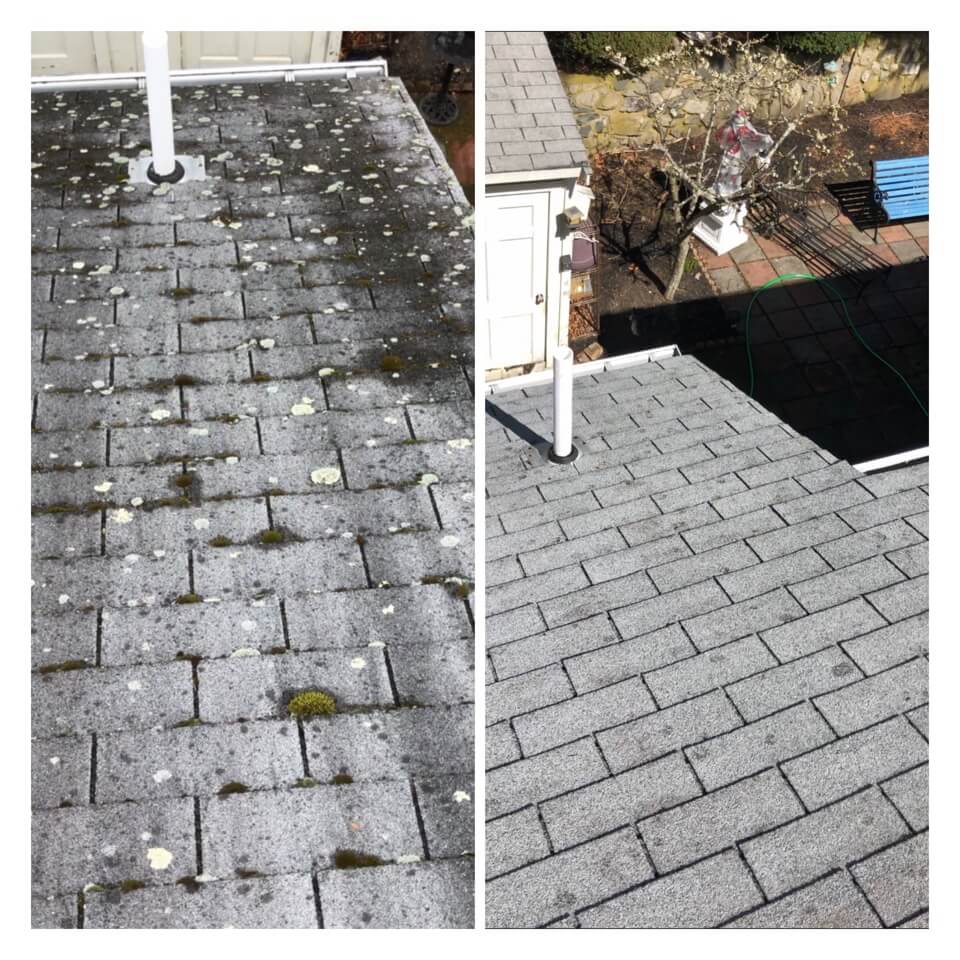 HiCleaners is the most experienced company in Mendon, MA that deals with roof washing and roof soft washing. All of our employees are trained to recognize precise solution mixing ratios to provide you with the safest and most effective soft washing service. Roofs are a commonly neglected part of a house due to the fact that most people don’t have ladders to access it, so it is very easy to just leave it alone and forget about problems that may start to arise. Just like many home owners, discoloration and small bits of moss on a roof can be overlooked because of the misconception that it is just aesthetic. However, it isn’t just aesthetic, the moss slowly lifts the granules off the shingles which in turn shorten the life of the shingle. The moss also spreads, just like any bacteria if it is left alone for too long, it can quickly become a problem that spirals out of control. Call HiCleaners for a free quote, we only use the most advanced eco-friendly solutions and equipment to make sure the job is done right, for the safety of the employees, your plants, grass, pets, and children.